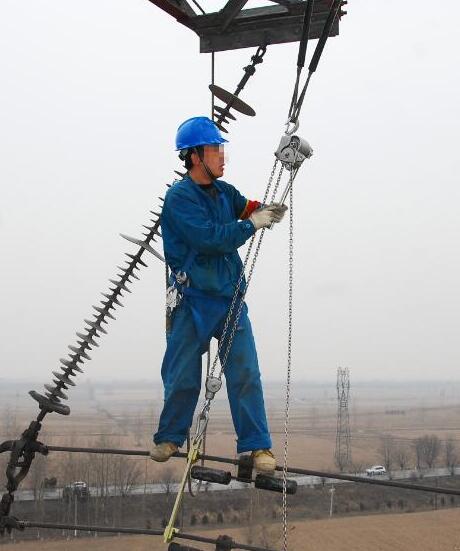 電力設施檢修電力工人攜帶鋁合金手扳葫蘆檢修作業...